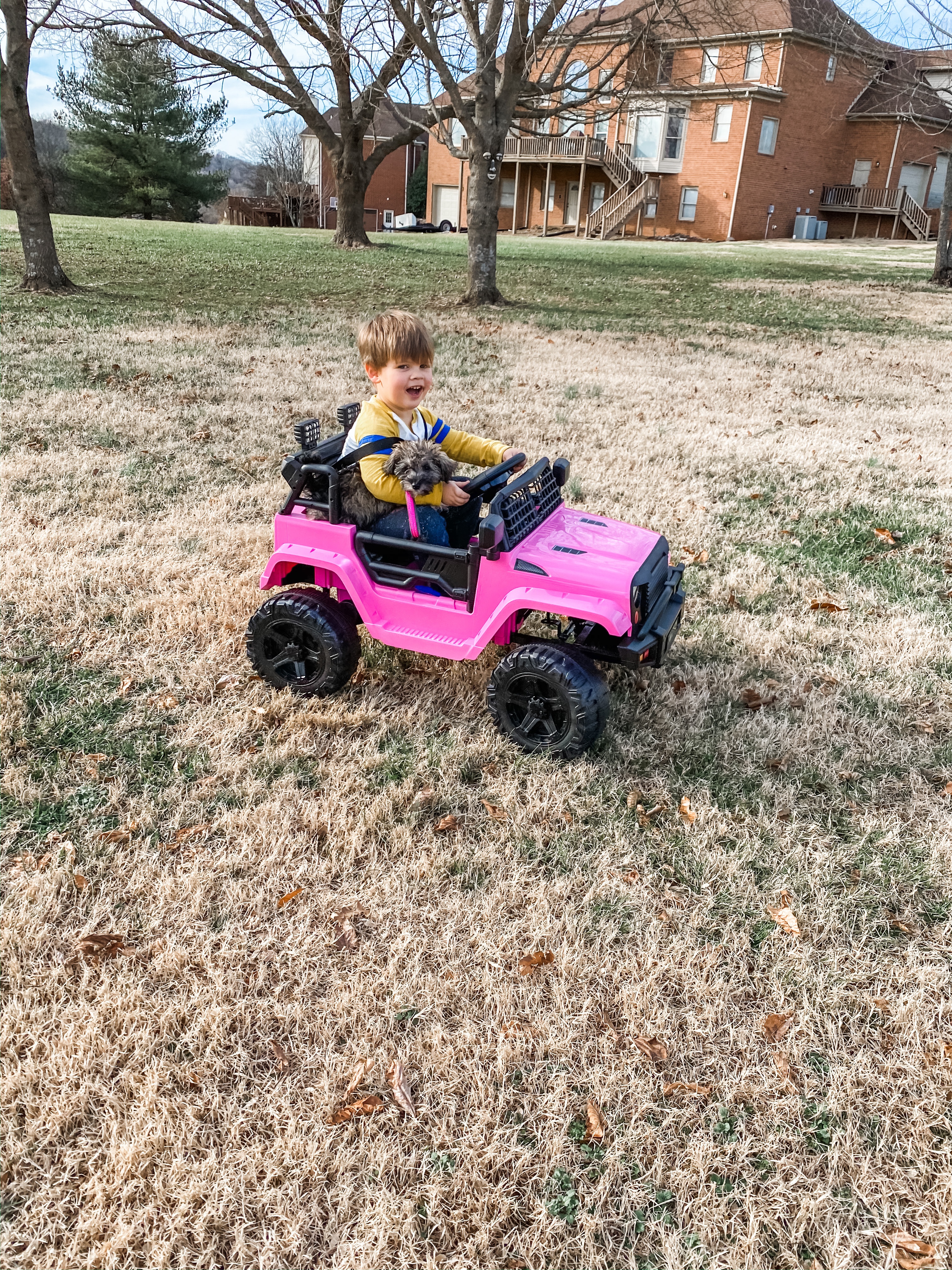 Eli has been asking Santa for a pink car for weeks. It was the only thing he truly wanted and he was consistent about. Naturally, he took Jackson for a spin.