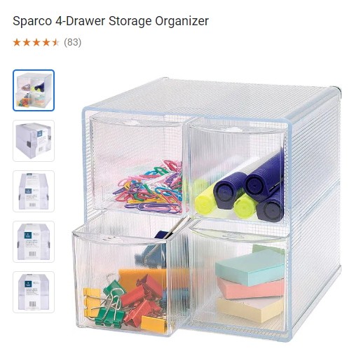 The best comparison I can find comes in a 6″ x 6″ x 6″ variety with multiple options on open boxes, four drawers, or two drawers.