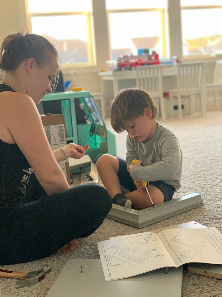 I am working on redoing Eli’s bedroom now that we almost have it fully painted in dark blue! I wanted a nightstand so he can put his water and such on now that he is getting older. I didn’t want to spend a ton though because they are nightstands (linked here) in a four year old’s room. These were a great price and look awesome! They aren’t the fastest to put together but weren’t horrible.