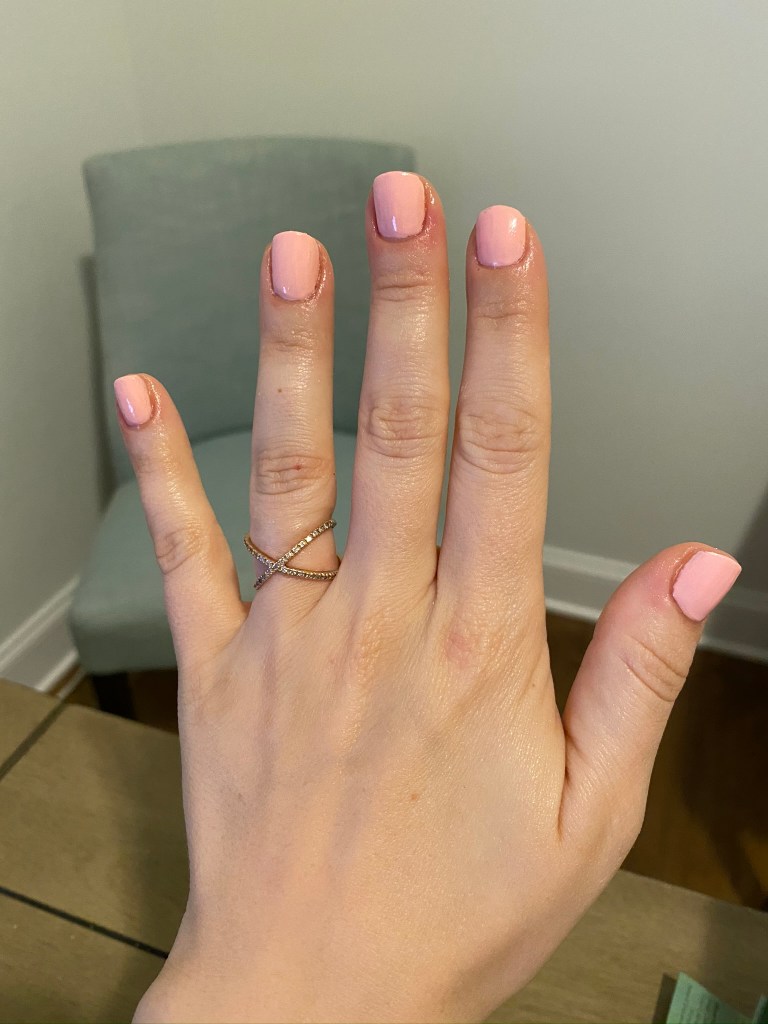 There are two brands I use in this video and both serve a purpose! Gelish is a solid choice all around. It lasts a long time and the quality is great! Gel Len is so affordable, but I don’t think it lasts quite as long with that base and top coat. I use the Gelish base and top coat typically and a Gel Len color in between.