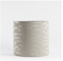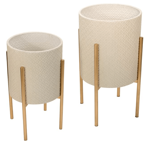 1. Pottery Barn “Leah White Patterned Raised Planters with Gold Stand“
