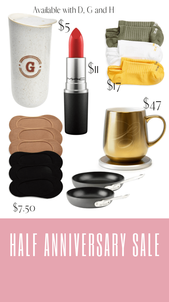 If you need socks or you have a gift that you need to pick up, the accessories at Nordstrom don’t disappoint! Grab a mug for the person who associates with a G, H or D or snag the heated coffee mug with all initial options still currently available. The All Clad pans are 5 star reviewed!
