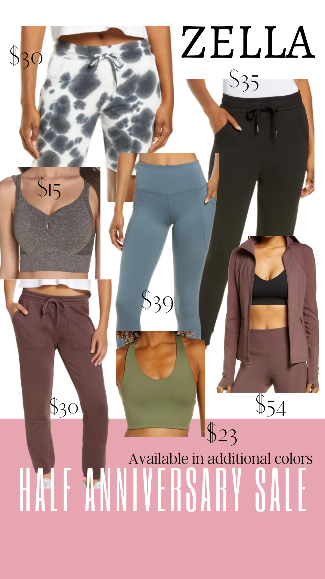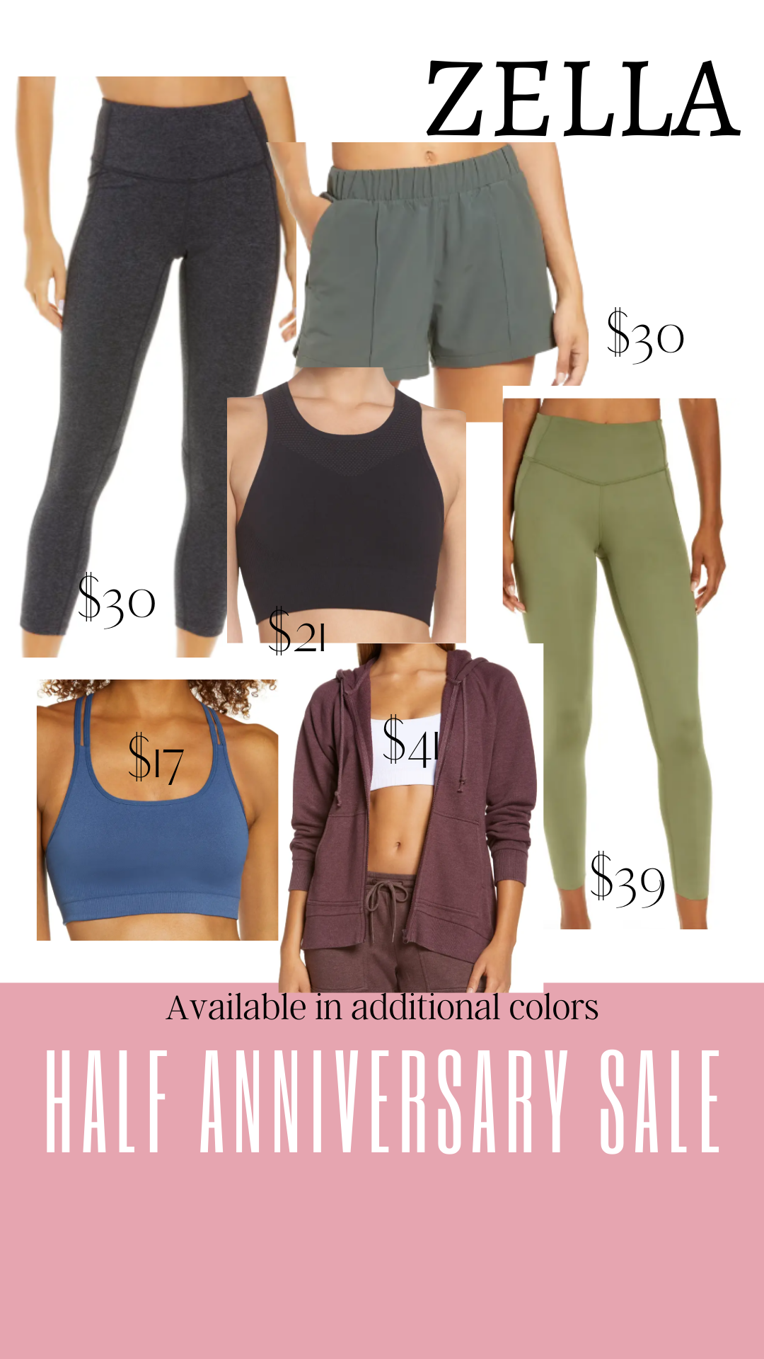 Zella – if you haven’t tried this activewear brand, the quality is great and the sale prices are so good! They have pocketed leggings and great sports bra options along with athleisure jackets and shorts.