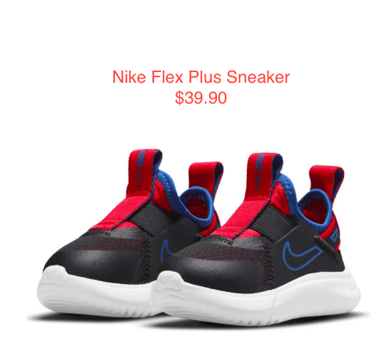 I typically grab Nike’s for Eli. I am not even sure why I started grabbing him Nike’s but he loves them and this year they have some really cool colors. Often, you can get a pair of sneakers half off! My kid is going to love the black, red and blue Nike Flex Plus!